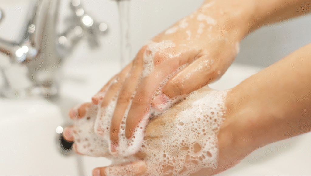 - Practicar el lavado de manos constante con agua y jabón, especialmente después de ir al baño, antes de comer y manipular alimentos.